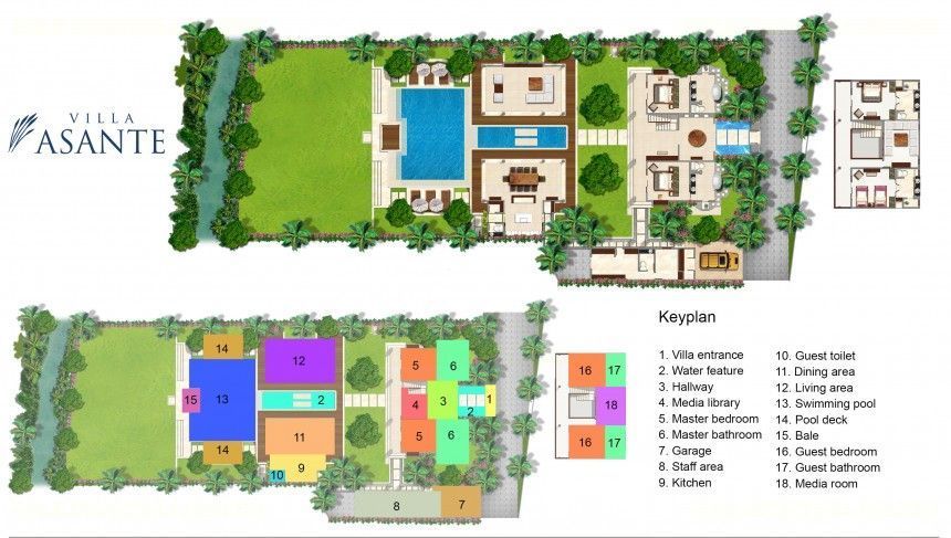 Perfect for families, weddings and events, villa Asante was designed by international architect Ross Franklin, with interiors by Dean Kempnich. This delightful property is a study in perfect symmetry, comprised of three buildings set within an expansive walled garden, together with a 20 x 12 metre lap pool and ‘bale' relaxation pavilion. The main two-storey building incorporates the bedrooms and a cosy TV room, while the two, single-storey, open-sided pavilions house the living room, and the dining area and kitchen. Villa Asante is ideal for families or groups of friends. There are plenty of relaxation areas, so guests will always find a private spot for peace and quiet, with a choice of air-conditioned comfort or tropical open-air living.