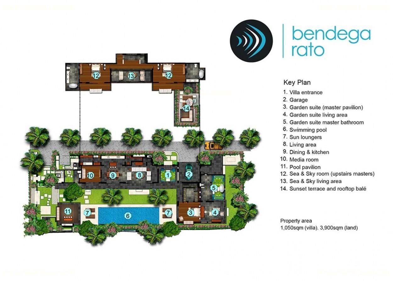 The villa offers three master bedrooms each with large ensuites, while a private master suite with its own plunge pool, sun deck and garden balé can be added as an optional fourth room. The villa can be rented as a four or three-bedroom holiday home, with the option of combining it with five-bedroom Bendega Nui for larger groups.