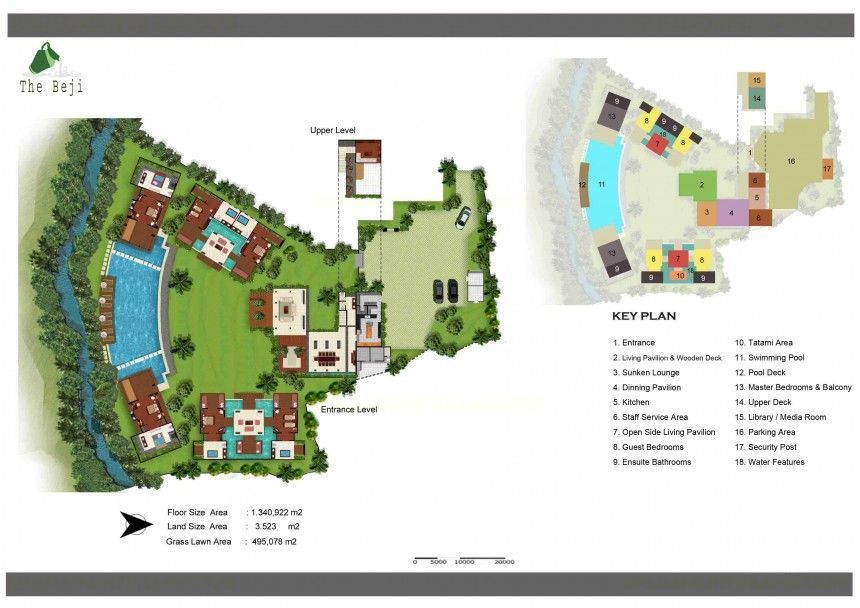The 6 Bedrooms Villa The Beji rests within a prime spot in Canggu on 4000 SQM of land, bordered by rice terraces and a river. Villa The Beji is packed with facilities that include a media room, 21-metre swimming pool with shallow zones for young kids, Japanese tatami style massage and spa area, mini football pitch, basketball hoop, flood-lit tennis court and a gym. Constructed of local materials, with ironwood shingle roofs, the style is restful with a fresh cool decor and contemporary furnishings. This luxury villa is close to a whole host of great restaurants and cafes, and walking distance to Finn's Recreation Club with its world-class recreational facilities, and just a short drive from the beach.