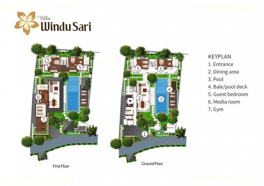 Villa Windu Sari - the name translates as “a beautiful place in time” is a peaceful oasis in Petitenget on Bali’s southwest coast. 5-bedroom Villa Windu Sari is characterized by an abundance of teak-wood and marble. It is comprised of two shingle-roof pavilions housing a magnificent open-sided living and dining area, an entertainment terrace, a gym, five bedrooms on two levels, a kitchen and a service area. Villa Windu Sari is set within a delightful walled garden complete with a feature swimming pool, and nestled within a safe and secure private estate.